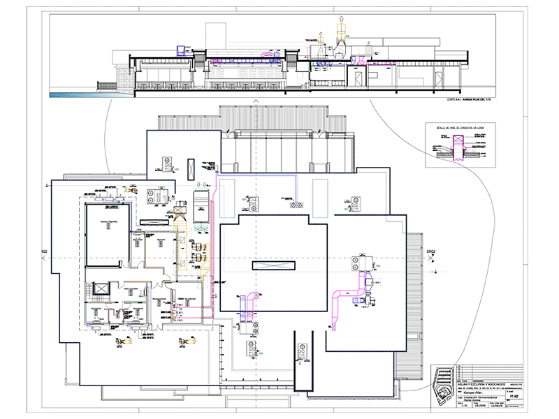 Sistema todo aire con equipos de frío-calor del tipo Roof-Top. Extracciones y ventilaciones mecánicas. Proyecto y Dirección de Obra.