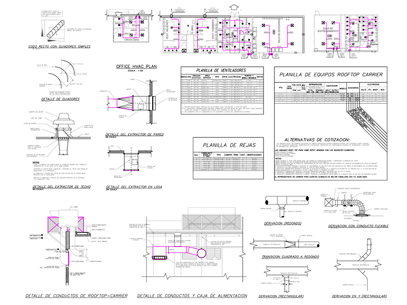 Sistema central de aire acondicionado con equipos tipo Roof-Top y compactos. Ventilaciones mecánicas de depósitos y trastiendas.