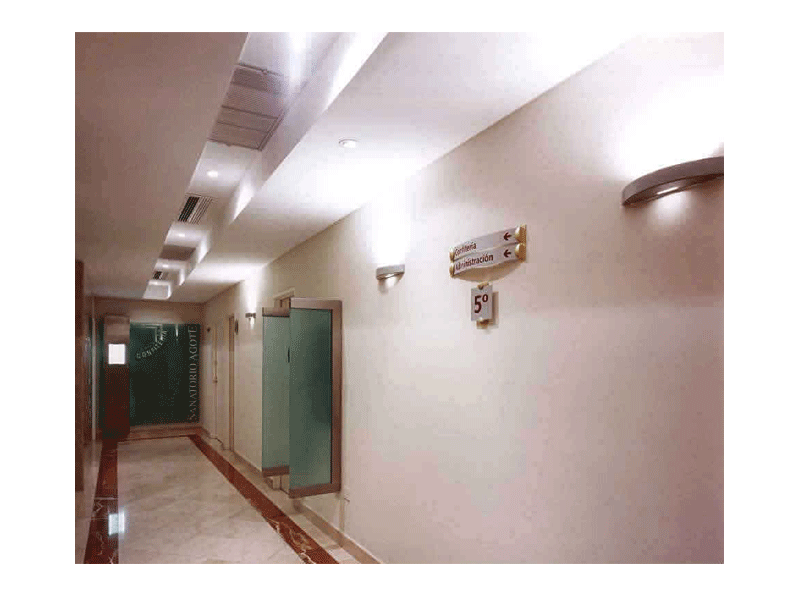 Proyecto y Dirección de Obra. Nuevo Edificio Clínica. Sistema frío–calor con generación de agua fría y caliente. Unidades manejadoras de aire con serpentina de agua enfriada y caliente acondicionan sectores de laboratorio general, bacteriología, hemoterapia, consultorios, sectores de imágenes, etc. Quirófanos, Sala de Recuperación, etc. atendidos con manejadoras de aire con filtrado de alta eficiencia intercalado en los conductos de alimentación y filtros terminales en los quirófanos. Sistema de Volumen de Refrigerante Variable (VRV) en habitaciones. Ventilaciones mecánicas en locales del subsuelo por medio de inyeccion de aire exterior y extracción.