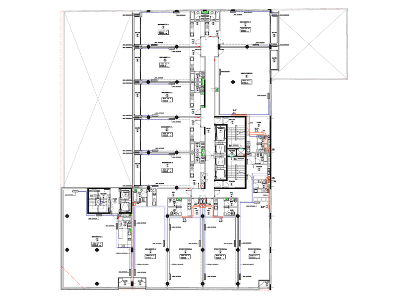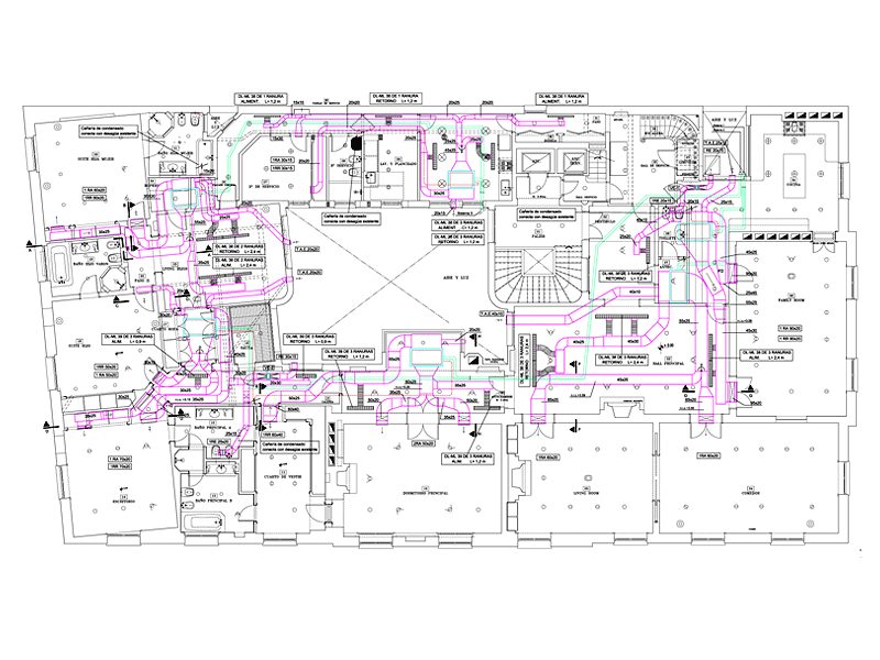 Sistema de calefacción por piso radiante, refrigeración por medio de equipos multisplit. Acondicionamiento de espacios comunes y ventilaciones mecánicas de cocheras.